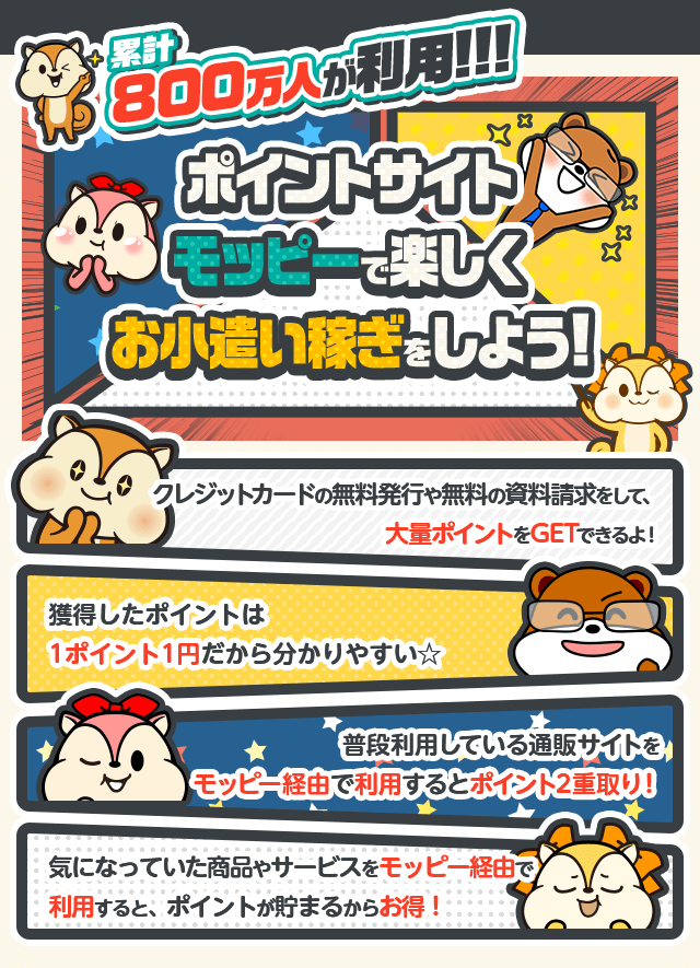累計800万人が利用している高還元のポイントサイトモッピ ポイ活するならモッピー ポイントサイトでお小遣い稼ぎ