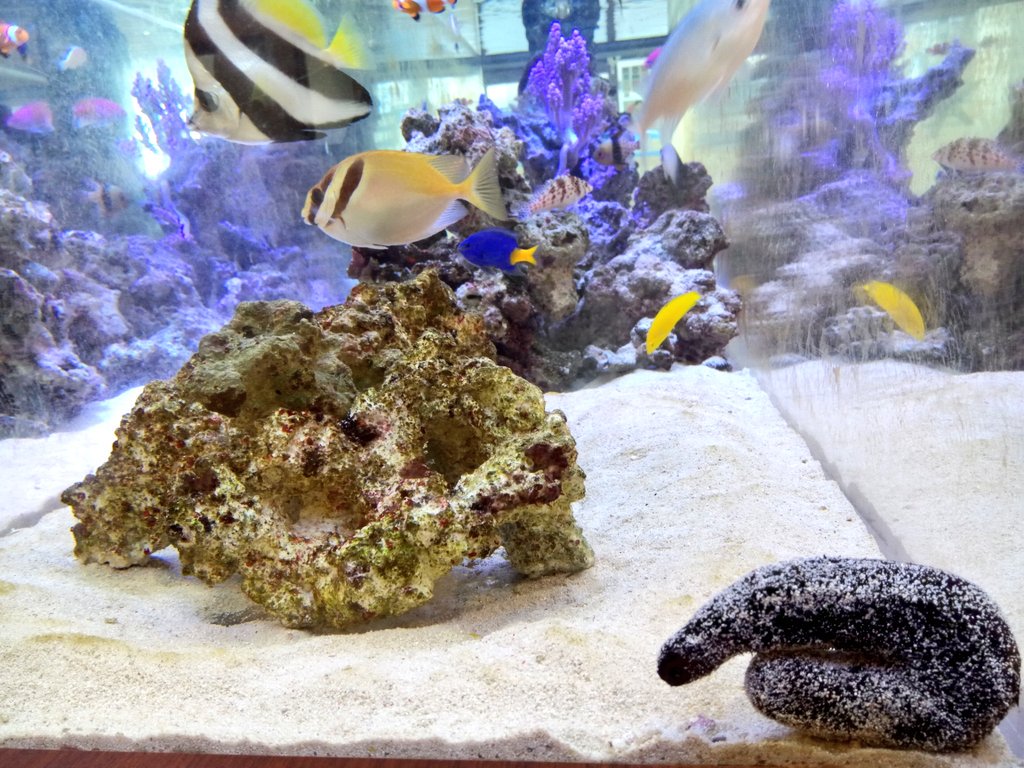春臣海里 ハルオミカイリ ちなみにナマコが生々しい 笑 なぜに折りたたまれておるのかwwwもう1匹のナマコの後にはウニかな あとエビいたよ 私エビアレルギーだよ N ぷんすか 薬局 水槽 なまこ エビ